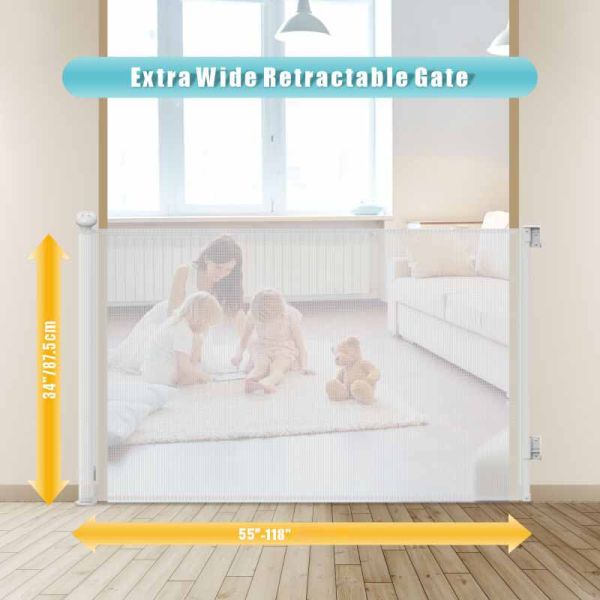 Extendable Durable Mesh Retractable Baby Gate For Children Safety Easy Install Images |